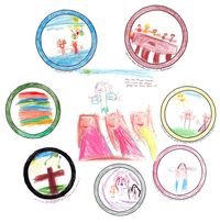 Die fertigen gemalten Kinder-Bilder kommen aus katholischen Kitas in Haßloch/Pfalz.