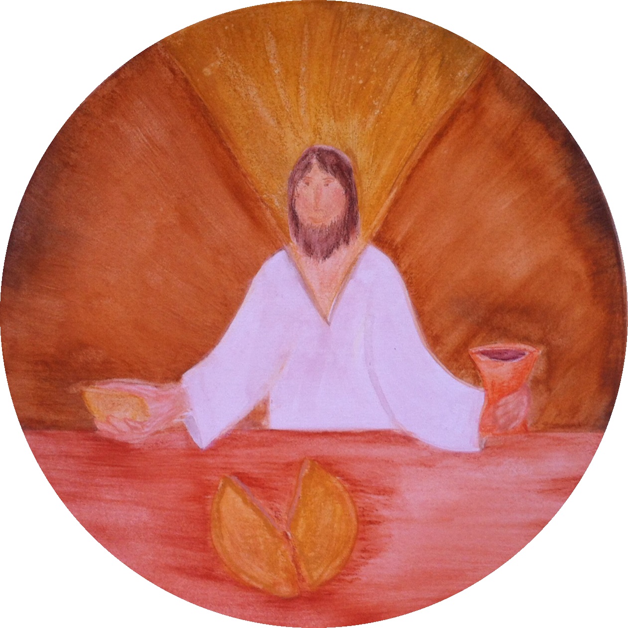 einen Kelch und ein Stück Brot.