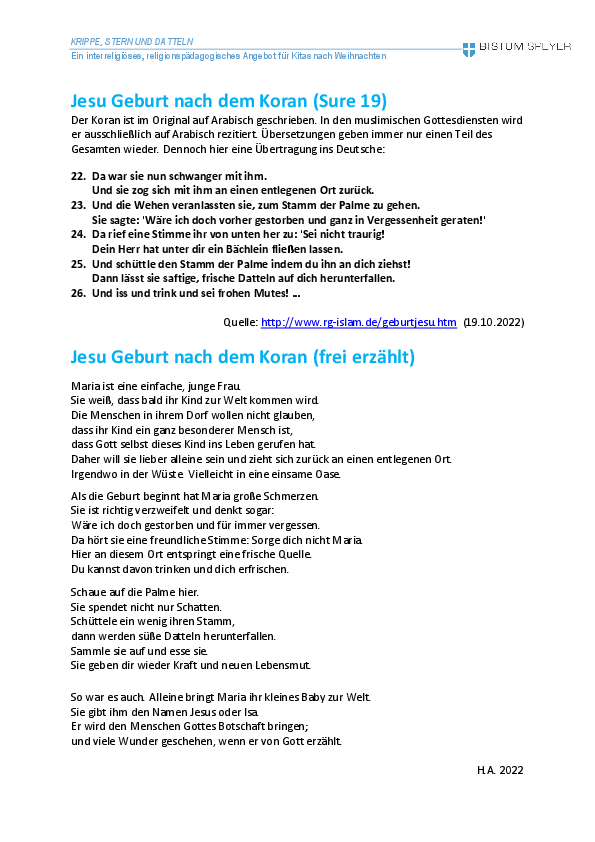 Aktionsseite des Referates Seelsorge in Kitas